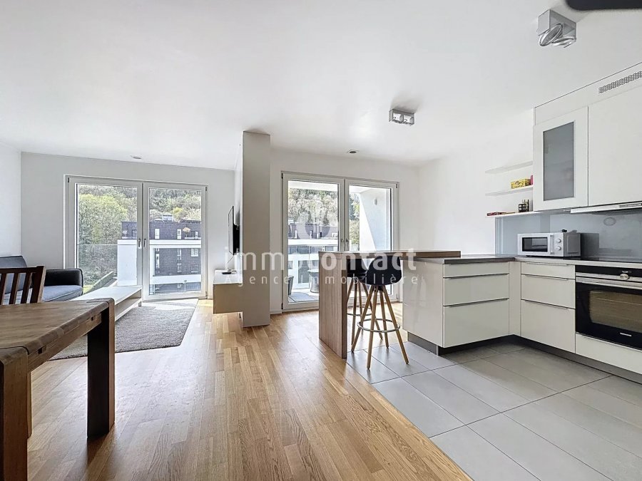 L'agence Immo-Contact vous propose ce sublime appartement haut standing de +/− 85m² avec 2 chambres, terrasse et parking, situé à Luxembourg-Mulhenbach.Idéalement situé, proche pharmacie, bureau de poste, cabinet médical, boulangerie, restaurants et transports en commun.