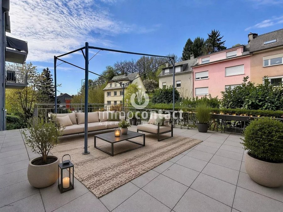 L’agence immobilière Immo-Contact vous propose ce charmant appartement d’environ 90 m² de surface habitable, idéalement situé à Luxembourg-Kirchberg.Ce bien séduit par ses volumes, sa luminosité et son agencement fonctionnel, offrant un agréable espace de vie, deux chambres à coucher ainsi que deux belles terrasses.