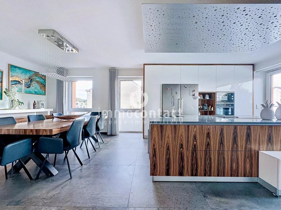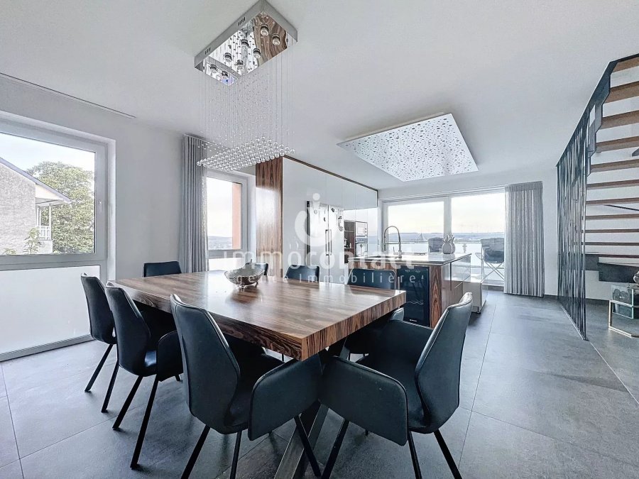 The Immo-Contact real estate agency offers you this exceptional property, a high-standard duplex in a two-family house of +/− 160m² with a total surface area of 200m² located on the heights of Remich with panoramic views over the vineyards.