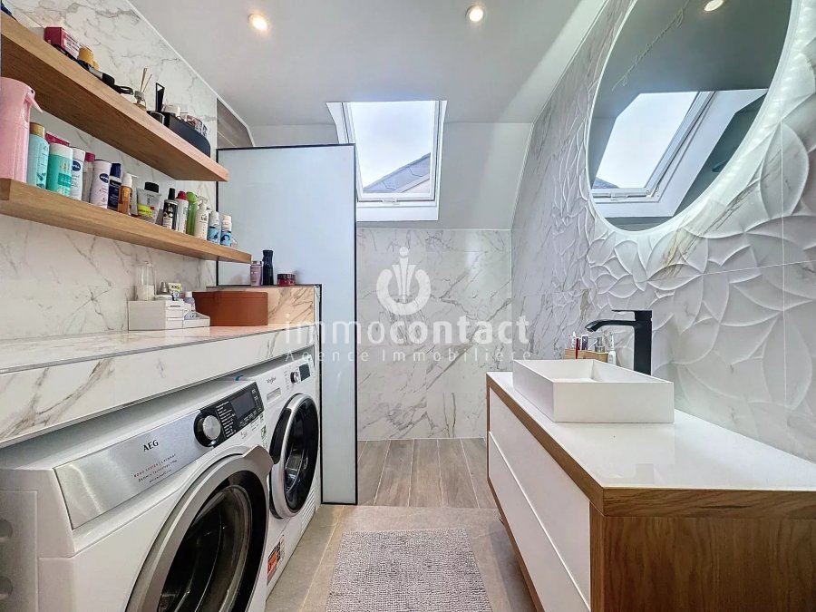 - Salle de bain avec douche, buanderie, meuble vasque, WC et fenêtre
